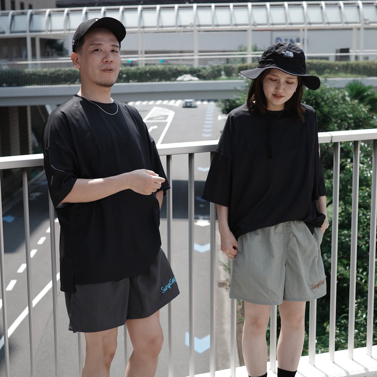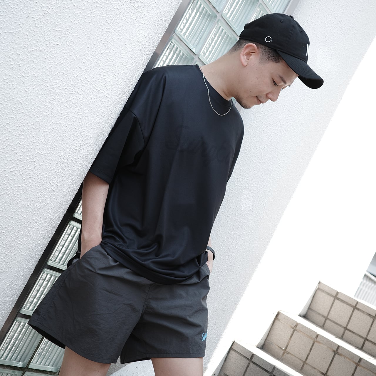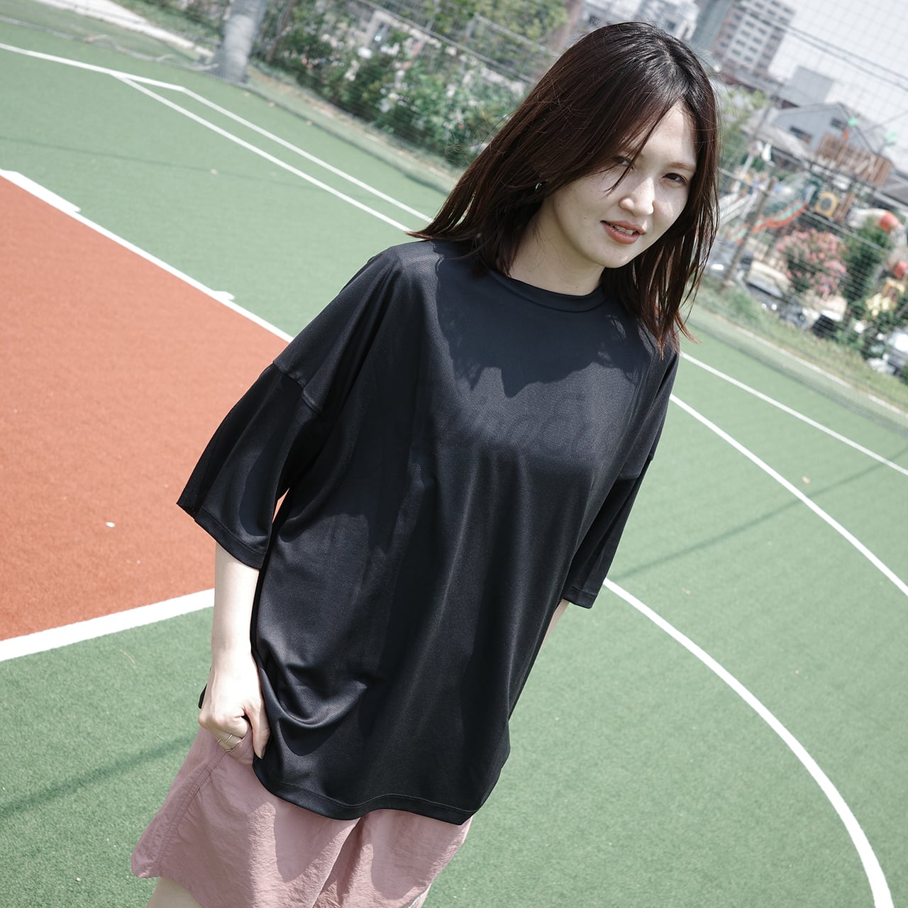 胸に薄くロゴをレイアウトしたラグランスリーブのオーバーサイズTシャツです。
