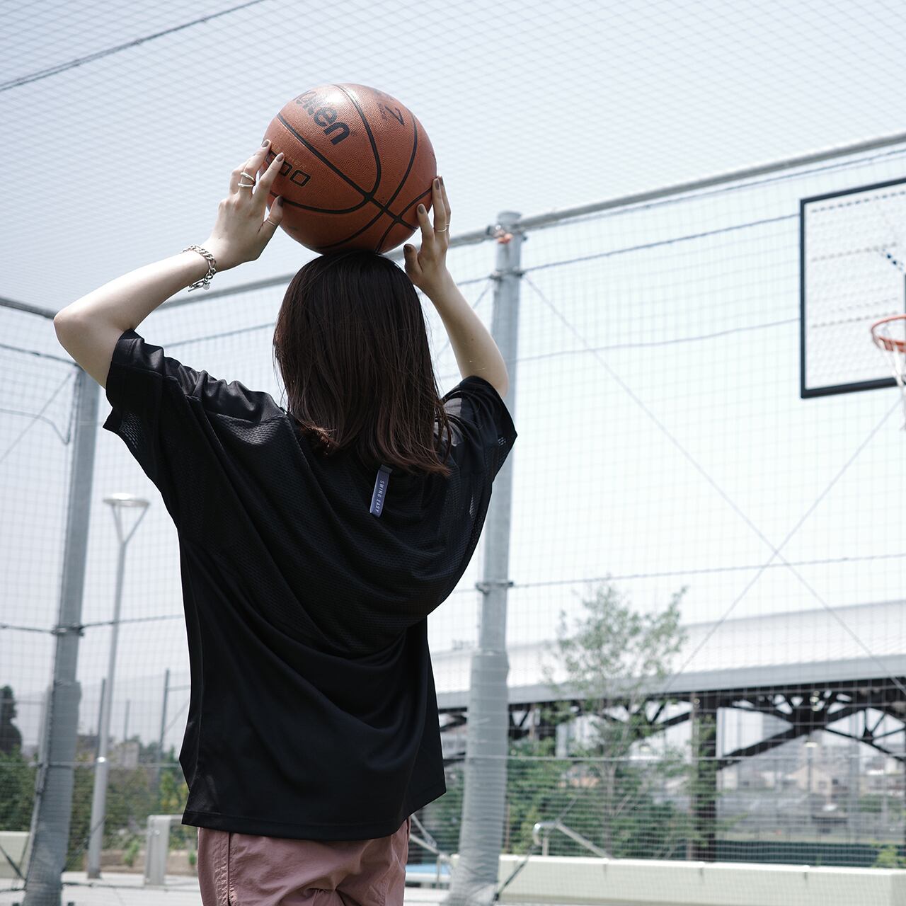 サイクルジャージに使用される吸汗速乾性、伸縮性に優れた高機能素材を採用し、サラッとした着心地に仕上げています。背面にはハーフメッシュを用いてムレを軽減。